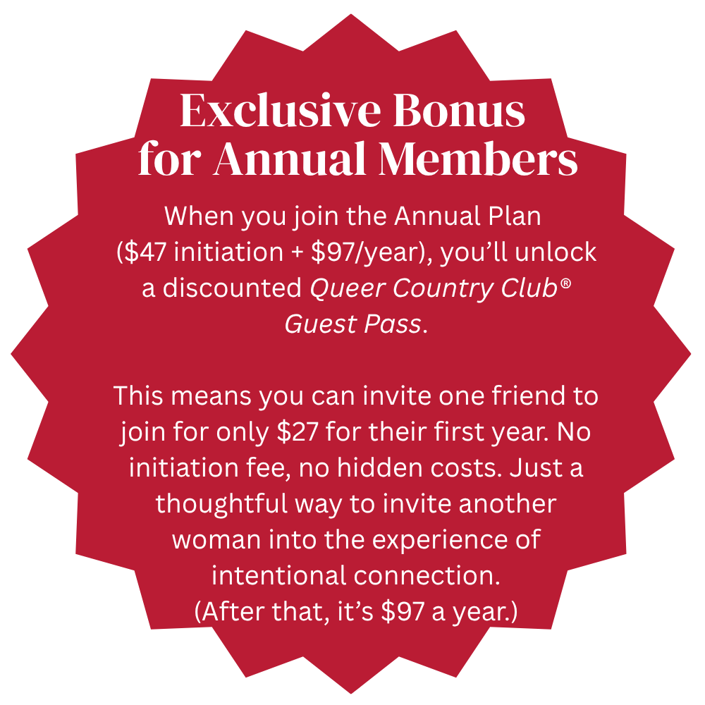 That’s exactly why we created The Queer Country Club®. Many women join simply for the private, curated community. You’ll meet high-caliber queer women from around the world, share conversations, and start building genuine friendships.